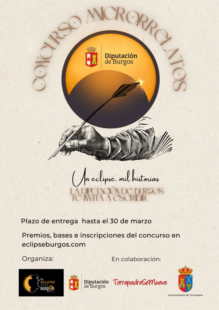 La Diputación de Burgos, en colaboración con la Asociación TorrepadreSeMueve, convoca el Concurso de Microrrelatos, incluido dentro de la programación especial Eclipse Burgos 2026.